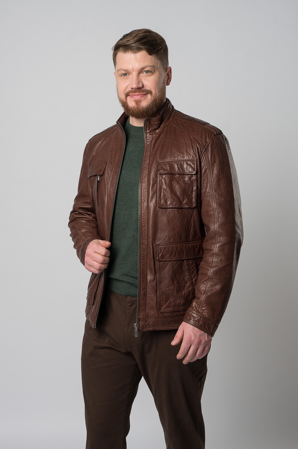 Мужская куртка из натуральной кожи в коричневом цвете, который привлекает внимание. Удобный полуприлегающий фасон понравится тем, кто прежде всего ценит свободу движений. Аккуратные вместительные карманы позволяют взять с собой самое важное. Изделие дополнено невысоким воротником-стойкой и застежками на выбор: молнией или кнопками. Мы гарантируем бесплатную примерку и возврат товара в течение 30 дней.