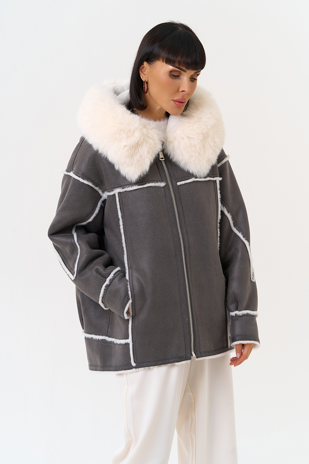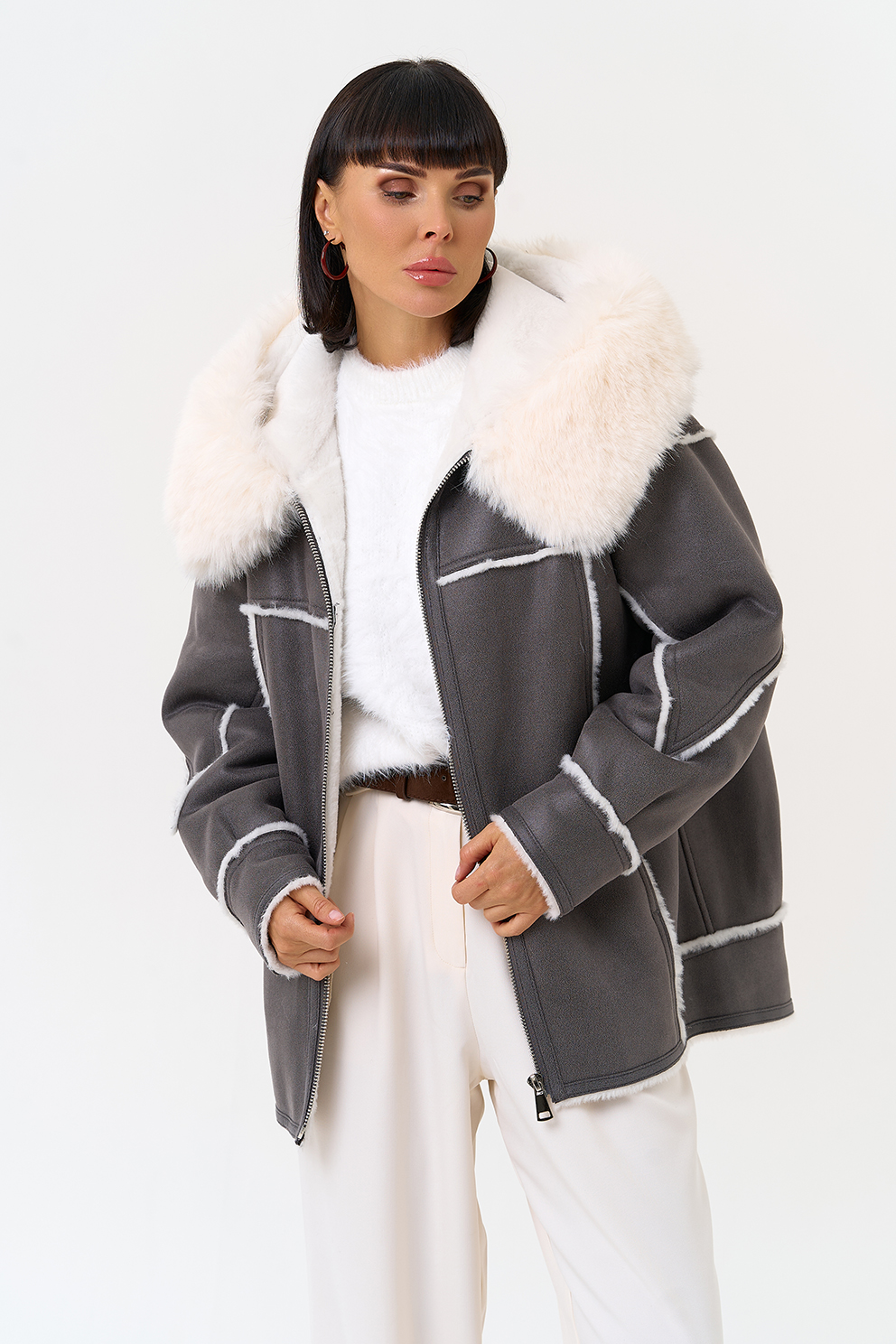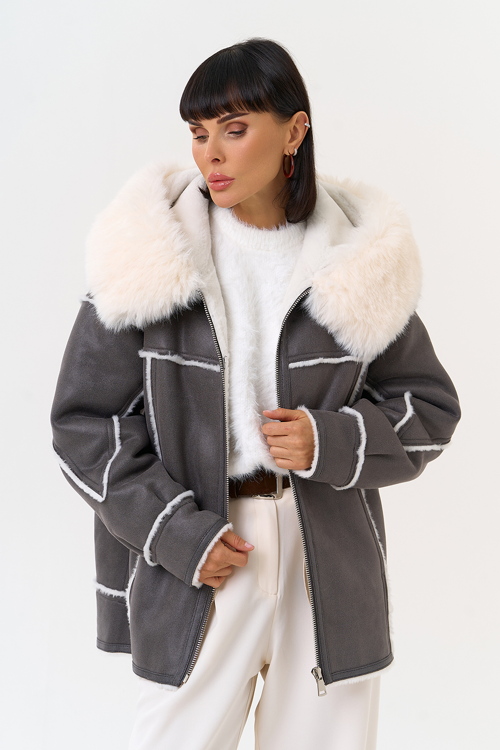 Отделка ворота - эко мех, цвет белый