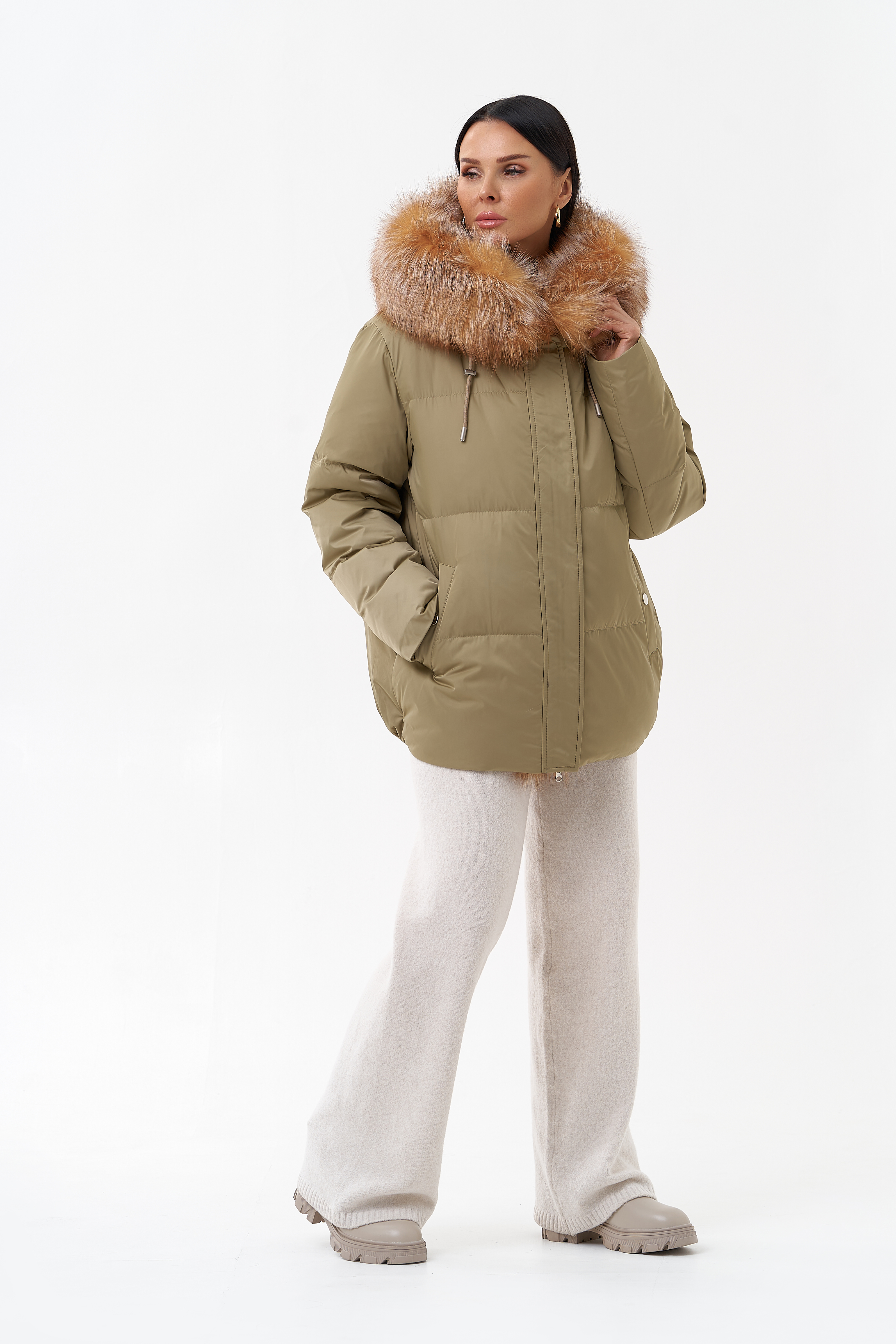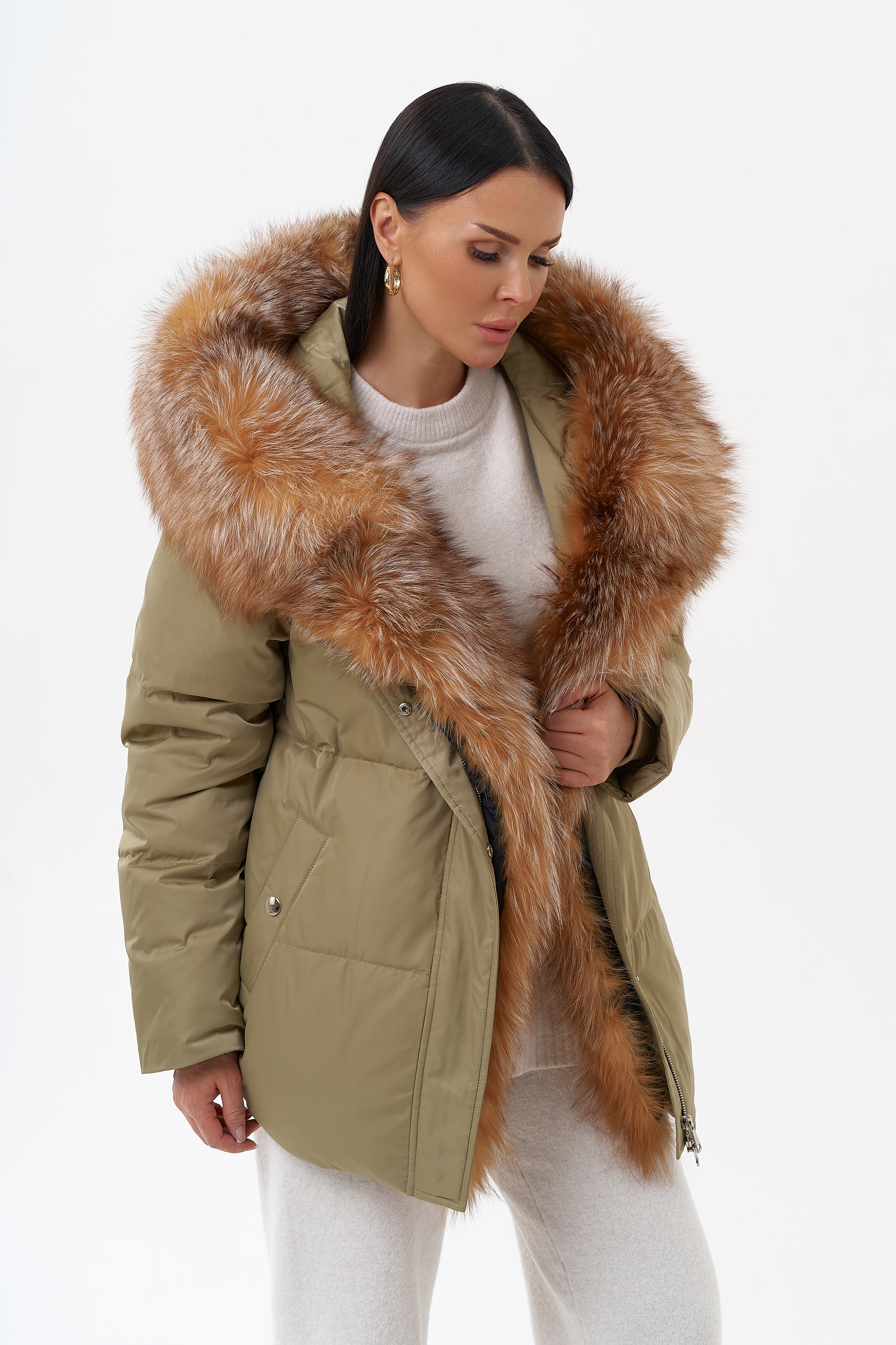 Крой воротника - капюшон, отделка лиса