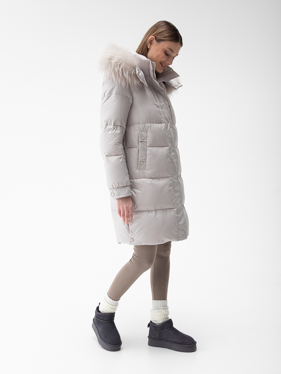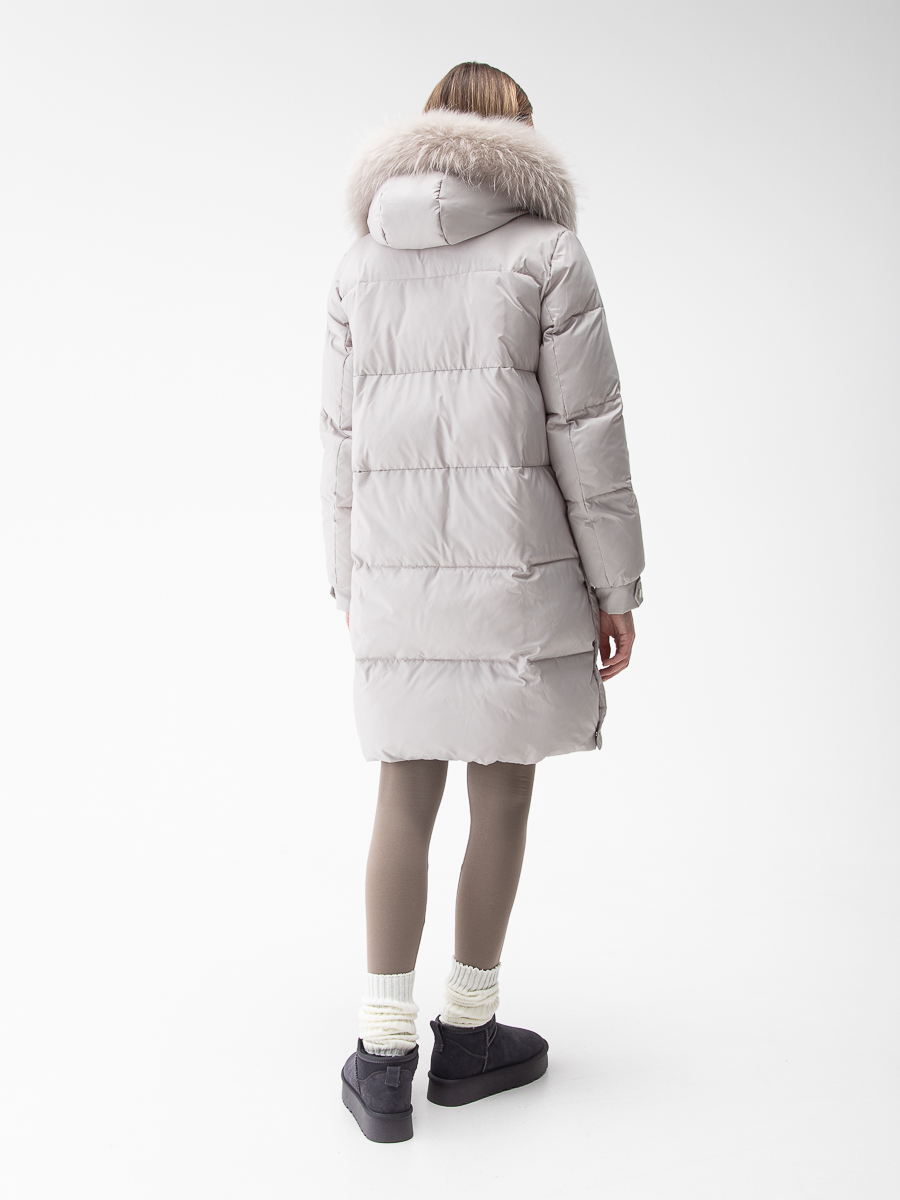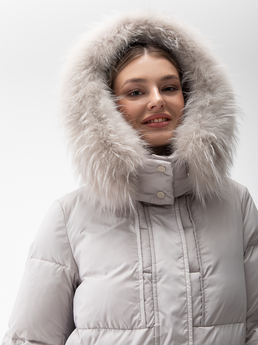 Крой воротника - съёмный капюшон, отделка енот