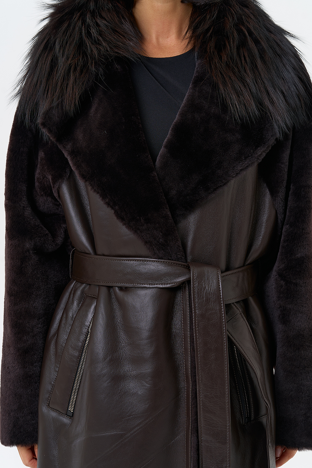 Отделка ворота - мех лисы, цвет темно-коричневый