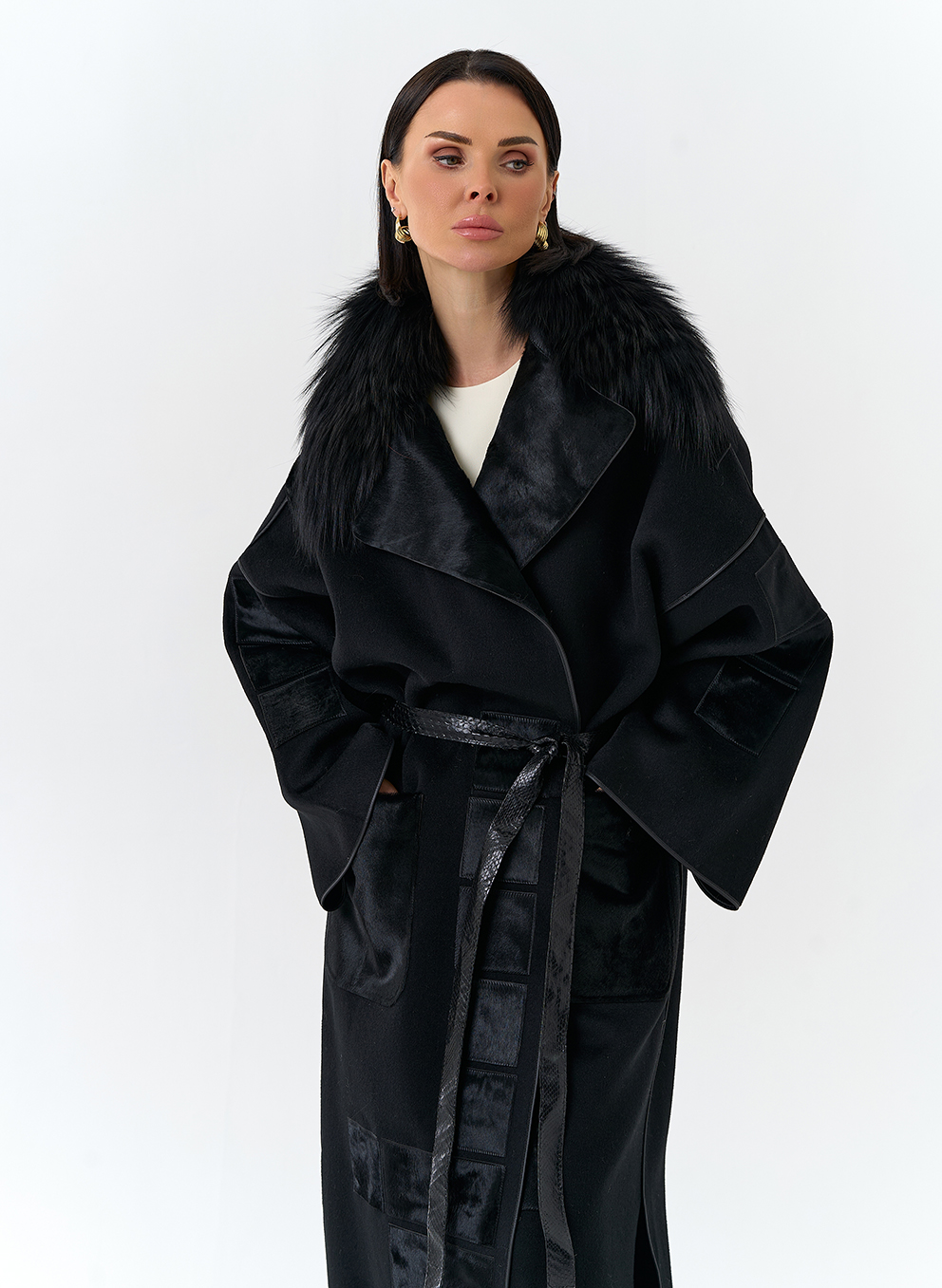 Отделка воротника - мех лисы, цвет черный; Cavallino
