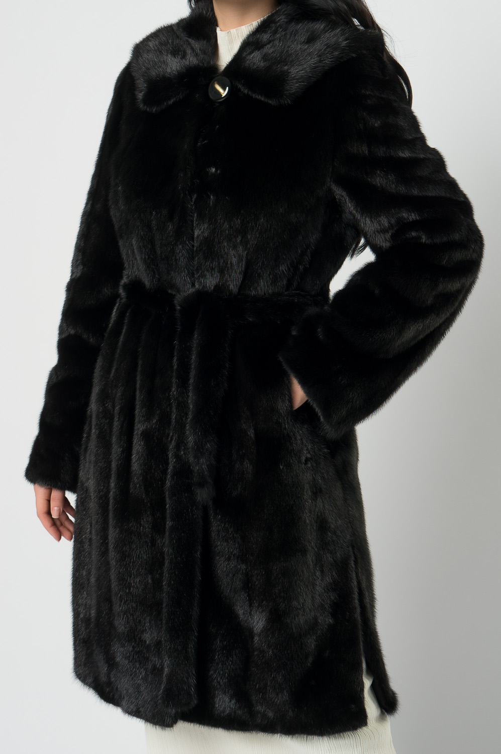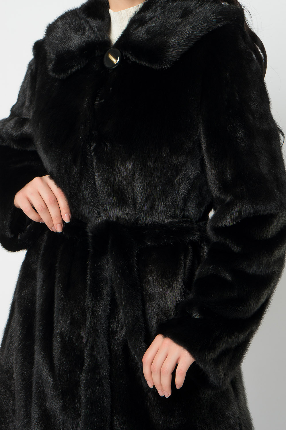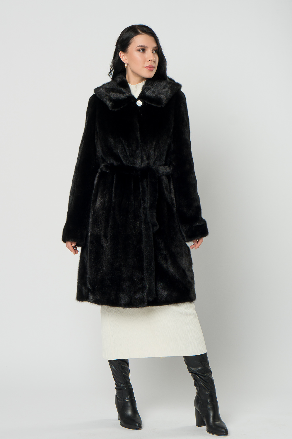 Норковая шуба прямая под пояс